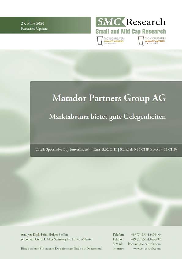 Veröffentlicht 24. März 2022 Urteil: Buy (unverändert) | Kurs: 4,30 CHF | Kursziel: 5,10 CHF (zuvor: 5,00 CHF) Jüngste Geschäftsentwicklung Der Investmentfokus der Matador Partners Group liegt auf Secondary Private Equity. Matador investiert dabei in PE-Bestandsportfolios, die über den Zweitmarkt erworben werden und dadurch bezüglich ihrer Zusammensetzung transparenter sind als neu aufgelegte PE-Fonds. Trotz [...]