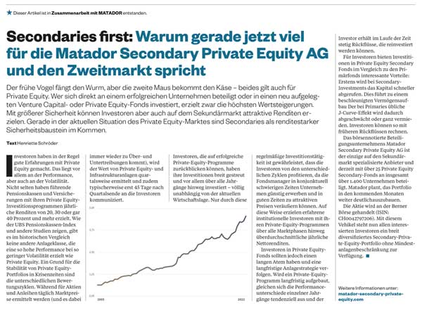 • Secondaries first: Warum gerade jetzt viel für die Matador Secondary Private Equity AG und den Zweitmarkt spricht